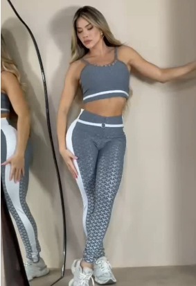 Produzido em tecido de alta qualidade, em tecido Jacquard, veste super bem, oferecendo toque macio, elasticidade e excelente ajuste ao corpo. O conjunto conta com modelagem especial que levanta e valoriza o bumbum.