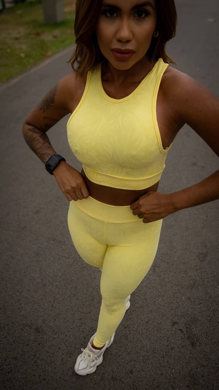 Além disso, o conjunto é ideal tanto para treinar quanto para compor looks esportivos cheios de atitude! Sinta-se confortável, confiante e pronta para se superar todos os dias.